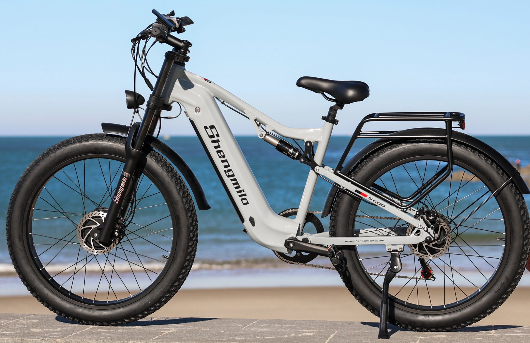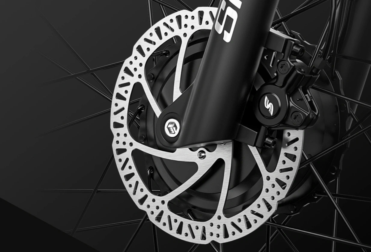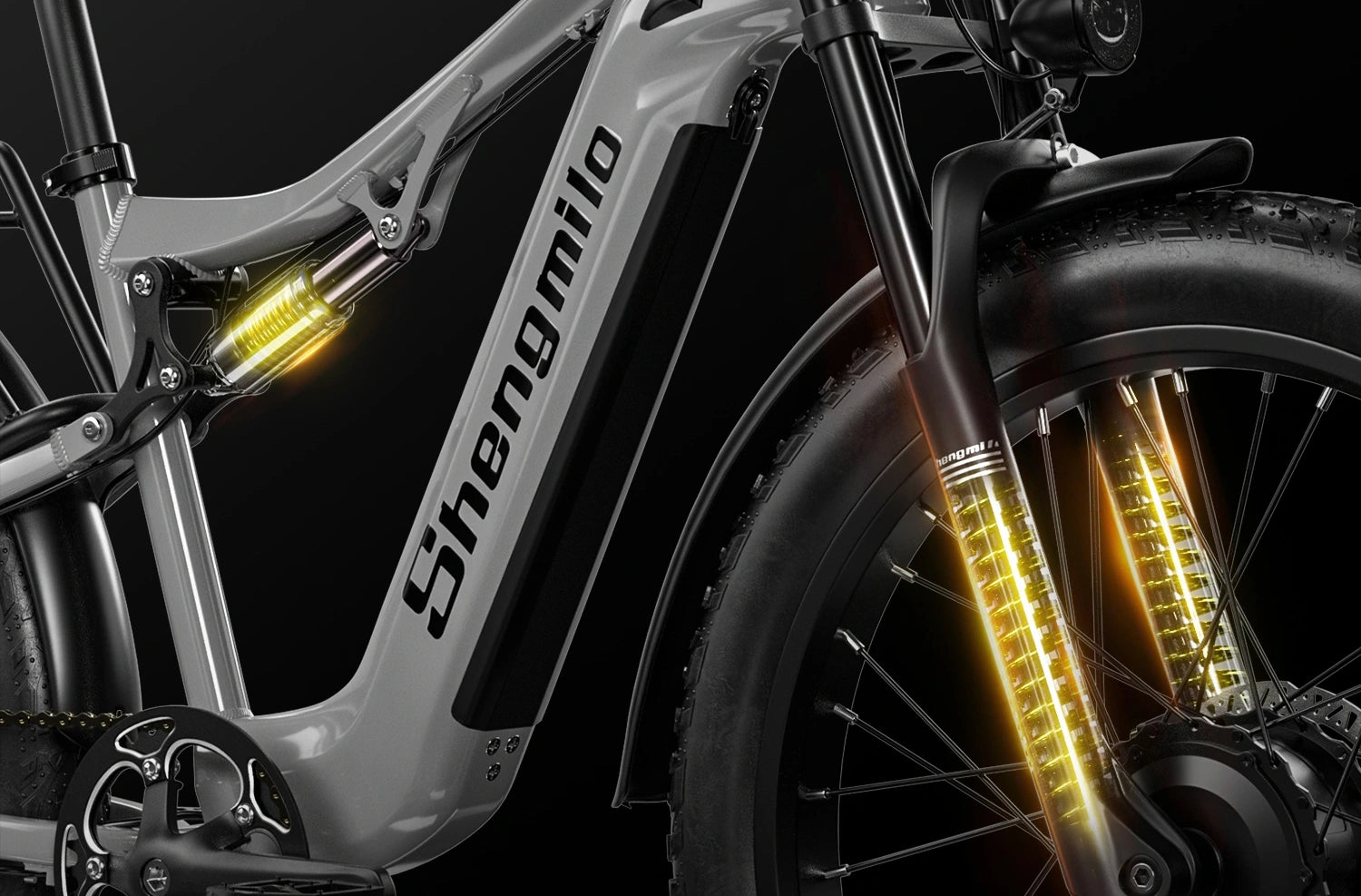 Double-shoulder front fork and rear shock absorb bumps and vibrations, delivering a smoother, more stable ride on any terrain