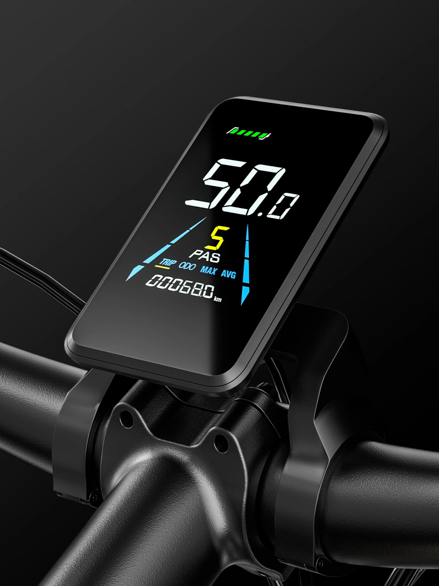 Take charge of your ride with the Shengmilo S700’s 3.5-inch color display. Clearly showing speed, battery status, pedal-assist level, and trip distance in real time, this bright and user-friendly screen keeps you informed at a glance. Whether riding during the day or at night, it ensures every journey is safe, efficient, and enjoyable.